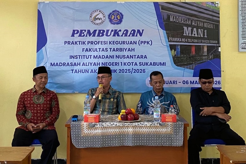 MAN1Si - Citamiang - MAN 1 Kota Sukabumi kembali dipercaya menjadi lokasi pelaksanaan Praktik Profesi Keguruan (PPK) bagi 13 mahasiswa Institut Madani Nusantara, Program Studi S-1 Pendidikan Agama Islam (PAI). Kegiatan PPK ini akan berlangsung selama 40 hari kerja dan secara resmi dibuka pada Rabu, 21 Januari 2026, bertempat di Aula MAN 1 Kota Sukabumi. Kegiatan ini merupakan bentuk sinergi antara lembaga pendidikan tinggi dan madrasah dalam upaya menyiapkan calon pendidik profesional yang memiliki kompetensi pedagogik, kepribadian, sosial, dan profesional.