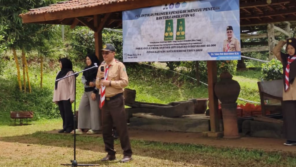 MAN1Si - Nyalindung - Sebanyak 28 Pramuka resmi dilantik menjadi Bantara dalam upacara khidmat yang dipimpin Ka Mabigus Pangkalan MAN 1 Kota Sukabumi pada Senin (16/02/2026). Kegiatan yang berlangsung di Kampung Lisung Uyut Cijangkar, Nyalindung, Kabupaten Sukabumi tersebut menjadi puncak rangkaian perkemahan dan proses pembinaan calon Bantara.