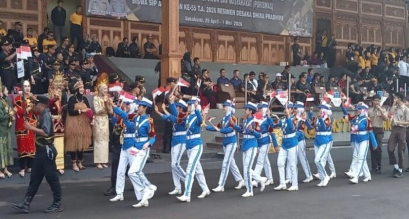 MAN1Si - Gunungpuyuh - Kontingen MAN 1 Kota Sukabumi turut ambil bagian dalam kegiatan defile pembukaan Pekan Olahraga dan Seni Mahasiswa Siswa (Porismas) 2026 yang diselenggarakan oleh Siswa Sekolah Pembentukan Perwira (SIP) Angkatan 55 Resimen Desaka Dhira Pradipha. Kegiatan ini berlangsung di Lapang Soetadi Ronodipuro Setukpa Lemdiklat Polri Kota Sukabumi, Rabu (29/04/2026), dengan diikuti berbagai peserta dari kalangan pelajar dan mahasiswa se-Sukabumi. Kehadiran kontingen MAN 1 menambah semarak suasana pembukaan yang penuh semangat dan kebersamaan.